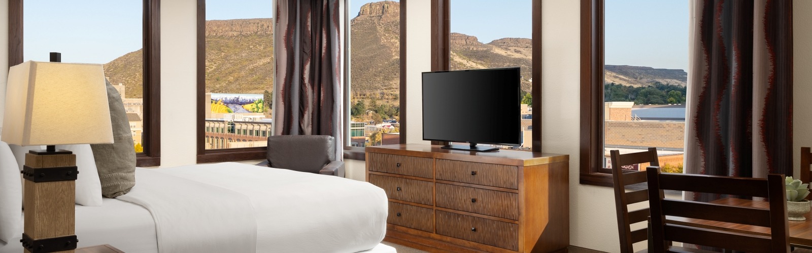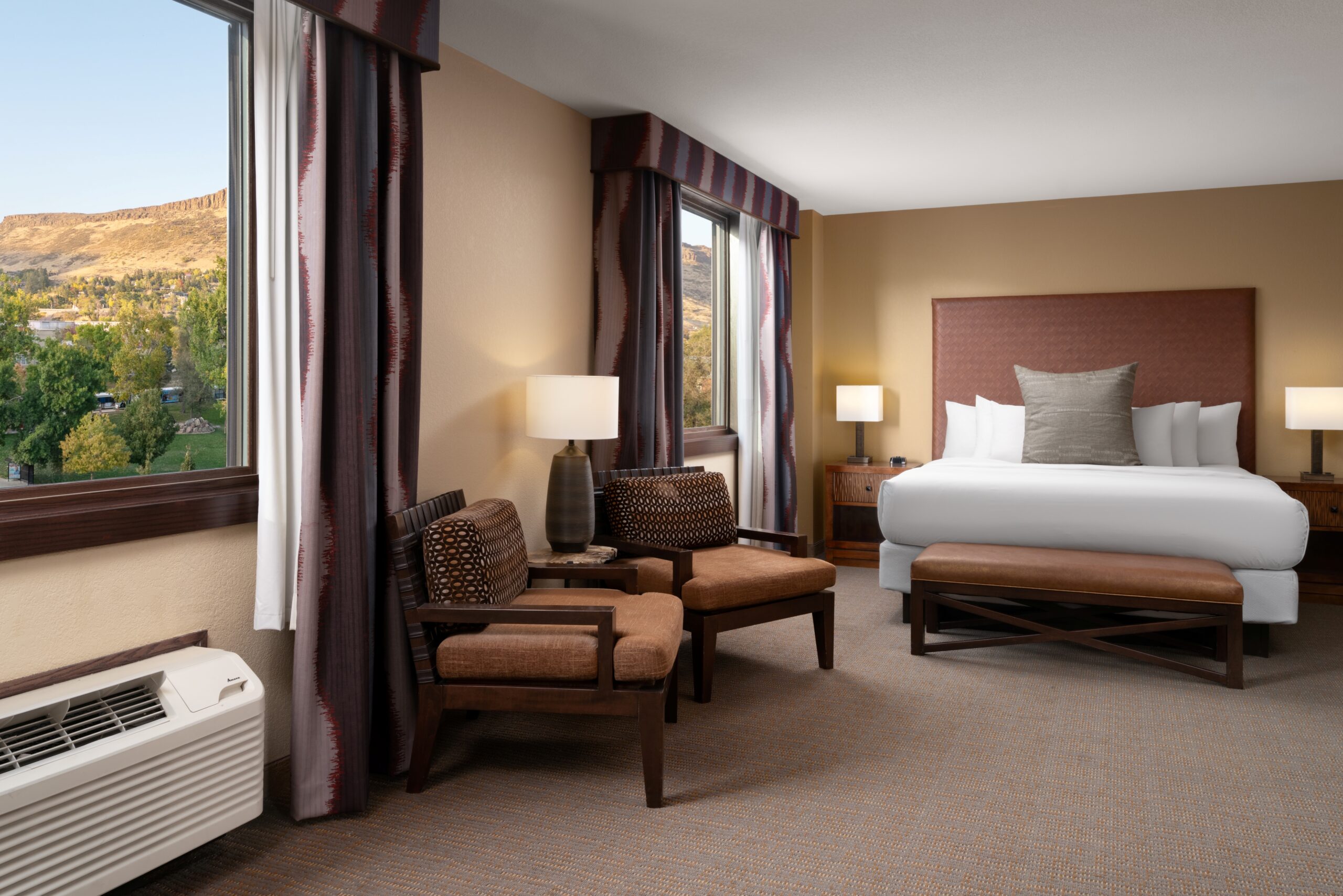 Comfortable well-appointed deluxe room with a king bed. Free High Speed internet access, 50″ flat panel LCD television with HD programming, mini refrigerator and microwave, five-star bedding, plush robes and much more.